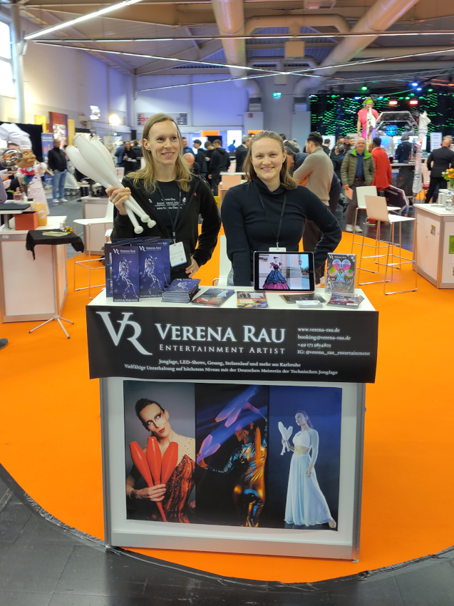 Auf der Best of Events Messe in Dortmund hatte ich einen Stand, um dem Publikum meine Kunst näher zu bringen. Außerdem trat ich auf der "Acts on Stage" auf mit meiner Nummer Solveig. Das war die Premiere dieser Nummer, daher war ich besonders aufgeregt – und dann auch noch mit einem außergewöhnlichen Set-up: Die Bühne war eine Silent Stage, das heißt es gab keine großen Lautsprecher, sondern alles, was auf der Bühne passierte, wurde über Kopfhörer an das Publikum übertragen. Ich hatte auch einen Stöpsel im Ohr, um meinen Backing Track zu hören, und mein Gesang wurde direkt per Headset an die Ohren der Zuschauenden gesendet. Im Vorfeld hatte ich etwas weiche Knie, denn damit hatte ich keine Erfahrung. Aber es stellte sich als richtig gute Erfahrung heraus: nicht nur genoss das Publikum meine Performance. Man sah auch zwischendrin immer mal wieder einzelne Personen, die die Kopfhörer kurz vom Kopf weg hielten, um zu hören, ob ich denn tatsächlich live singen würde, und mit einem beeindruckten Gesicht weiter zuhörten.
