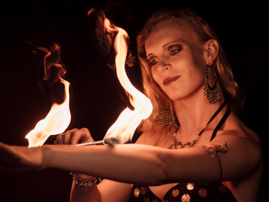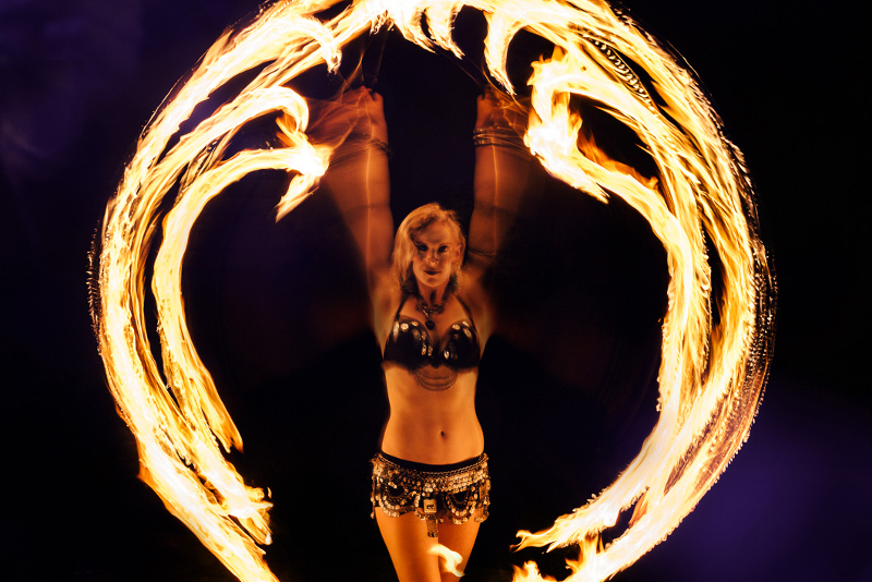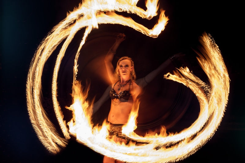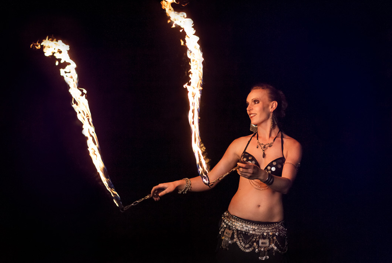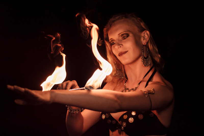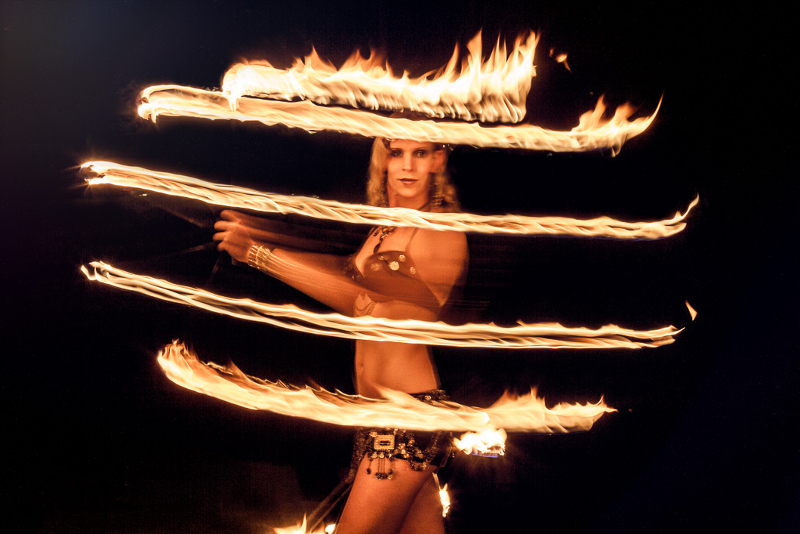 Häufig wird Verena nach Verbrennungen oder Verletzungen gefragt. Sie kann zum Glück sagen, dass ihr noch nie größere Unfälle mit Feuerpassiert sind. Die ein oder andere kleine Verbrennung trägt man als Feuerkünstler natürlich davon und man behält nach wie vor den Respekt vor dem heißen Element. Auch nach jahrelanger Übung ist eine Feuershow kein leichtfertiges Unterfangen und erfordert jedes Mal aufs Neue höchste Konzentration. Ja, es ist echtes Feuer, ja, es kann gefährlich sein, wenn man unvorsichtig handelt.